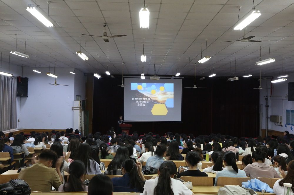 学生会团委办公室主任孟欣蕊对志愿者工作内容作了具体安排。她提出了志愿者的一些相关工作要求,包括志愿者的集合时间、在哪里集合、志愿者分组情况、比赛现场分布图以及志愿者工作任务的落实进行了说明。她也表示志愿者是充满激情活力的,希望大家都争做热情合格的志愿者。