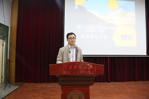 5月3日中午,我院于万人餐厅三楼多功能报告厅举行第二十四届“三笔字”大赛志愿者培训会。我院党委副书记梁作振、体育学院团委书记董文可以及来自政治与公共管理学院和我院的学生志愿者、学生会工作人员300人共同参加了此次培训会。培训会由我院团委书记买惠主持。
