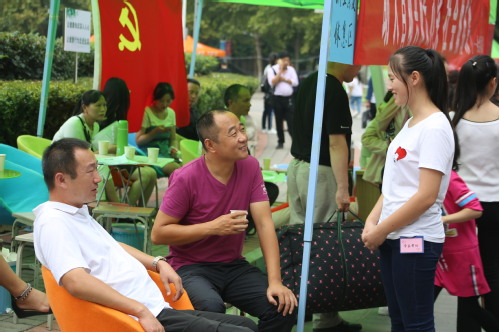为培养我院新生独立自主意识,在手续办理过程中新生家长不得参与。家长们会在我院搭建的休息区里休息放松。在这里,一杯温水,两声问候,几张小圆桌,数十张彩色的沙发椅就拉近了学院与家长朋友们的距离。真诚的相互交流使得休息区内洋溢着温馨和谐的氛围。