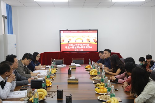 10月3日,社会事业学院在学院办公室301c室举办学院2007届毕业生十周年返校纪念师生茶话座谈会。我校校友办主要负责人、学院相关负责人及2007届返校学生三十余人参加了会议。