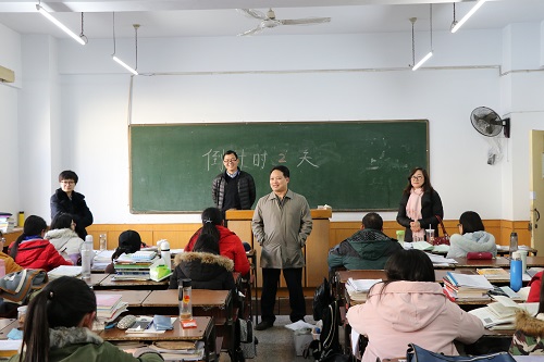 魏雷东谈到,“一进门就感觉大家状态非常不错,最后的两天大家一定要保持状态、放平心态,相信一定会取得满意的成绩。”在教室里,他对考研学生进行了亲切的问候和暖心的交流,给学生以信心和决心。他表示,我院历来考研成绩均在校内名列前茅,去年的考研率更是位列我校文科类学院第一名。希望考生们备考时要坚定信念,增强攻坚克难的勇气。