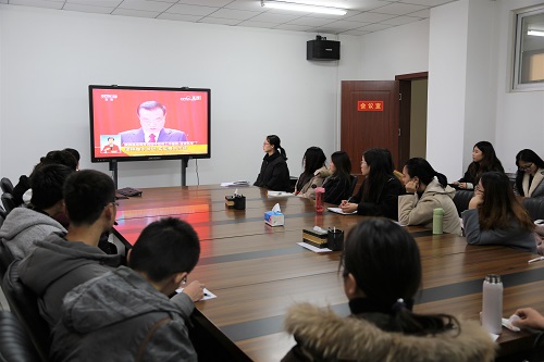 国事家事天下事,事事关心。为迎接2018年“两会”的顺利召开,引导青年学子关注时政,3月5日上午,我院团委组织学生代表于办公楼301C室观看两会开幕式直播。