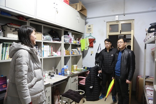 3月4日晚,值新学期开始之际,我院党委副书记梁作振、2016级辅导员田嘉玺对我院学生宿舍进行了查访慰问。