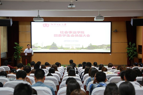 5月19日晚,我院于外国语学院报告厅举办团委学生会换届大会,院党委副书记梁作振及院团委学生会全体成员百余人参加。换届大会由院团委负责人,2016、2017级辅导员田嘉玺老师主持。