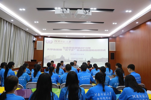 为深入学习贯彻习近平新时代中国特色社会主义思想,强化学生以实际行动助力建设新时代、新中国的意识。7月10日,我院于办公楼503室举行2018年大学生暑期“三下乡”社会实践活动出征仪式。我院党委书记魏雷东、院长高中建、党委副书记梁作振、团委负责人田嘉玺及40余名暑期实践队员共同参加了此次出征仪式。仪式由团委负责人田嘉玺主持。