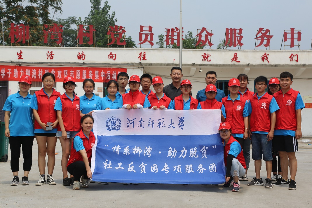“情系柳湾·助力脱贫”社工反贫困专项服务团指导老师及全体队员与驻村工作队合影
