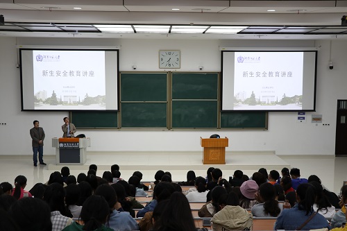为提高同学们的安全意识,帮助同学们掌握基本安全知识和技能,10月19日,我院在东校区综合教学楼302教室举办新生安全教育讲座。我院党委副书记梁作振及2018级辅导员王辉携2018级全体新生参加讲座。校党委保卫部副部长、保卫处副处长田岐瑞担任此次活动的主讲人。