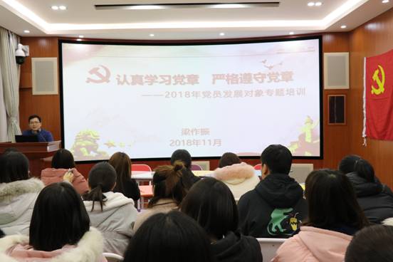 12月6日晚,学院第1期入党积极分子专题党课在学院办公楼503室开讲。学院党委副书记梁作振作了题为《认真学习党章 严格遵守党章》的党课宣讲,学院48名入党积极分子和党员共同参与聆听。