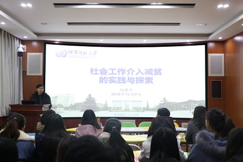 129日上午,应学院邀请,武汉大学社会系教授、博士生导师向德平于学院办公楼503报告厅作了题为“社会工作介入减贫的实践与探索”的学术报告。学院教师和本科生代表共50余人聆听了本次报告会。
