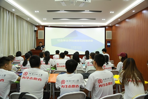 7月8日上午,我院在学院楼503室开展暑期“三下乡”社会实践培训会,学院各团队成员共四十余名参加本次培训,学院团委副书记田嘉玺担任主讲人。