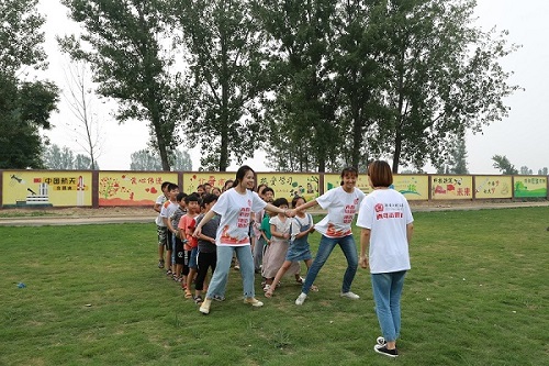 为了让小朋友更快地认识彼此,更快地融入集体,7月10日上午志愿者们在郝光屯小学足球场上开展了一节别开生面的社工小组课。志愿者们把小朋友们分成6组,通过“滚雪球”破冰游戏,促进组员彼此熟悉,消除陌生感。游戏过程中,孩子们纷纷为自己的小组加油,希望自己的团队取得最终胜利,大家的情谊也在一声声地呐喊声中迅速增温。活动接近尾声,志愿者老师们向孩子们发放精心准备的小礼物。