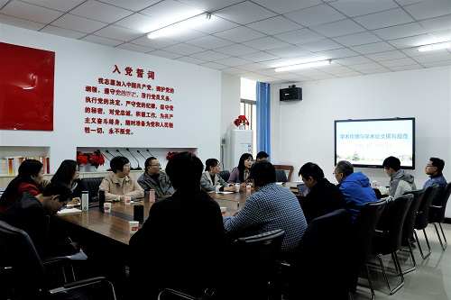 马纯红以评价体系为引,讲述学术论文写作细节。在探究如何写好一篇论文中,她谈到,论文题目是关键,要创新思维、精心设计;政治导向是核心,应关注时政、把握方向;要常常关注时政,时时寻觅素材,在日积月累中磨炼写作技能。舒隽则简要介绍了学术论文的审批流程,使在场人员更加充分了解投稿采编的注意事项。