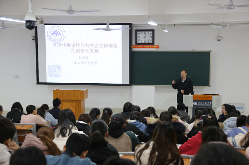 11月30日上午,应我院邀请,山东大学哲学与社会发展学院社会学系主任、博士生导师林聚任在东区综合教学楼104室作了题为“后现代理论转向与社会空间理论的创新型发展”的讲座。学院相关专业教师及学生共200余人到场聆听。讲座由社会事业学院党委书记魏雷东主持。