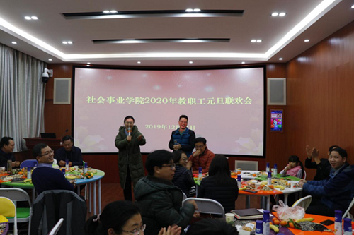 社会事业学院副书记、工会主席梁作振回顾了学院及学院工会过去一年取得的成绩,对一年来积极参与和支持学院工作的老师们表示衷心的感谢,并希望广大职工在接下来的一年里要踊跃参加学校和学院组织的活动,工作之余多多锻炼身体,要经常到学院今年年底重新整修一新的“教工之家”去打打乒乓球,活动活动身体,提议大家“每天锻炼一小时 健康工作五十年 幸福生活一辈子”。