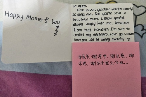 活动中,青年学生通过一封信、一张照片、一刻陪伴或是一个拥抱等多种形式,来表达对母亲的节日祝福,传递对母亲的爱与感恩。一段段文字、一幅幅合影、一段段视频注入了学生们绵绵的深情,展示着与母亲间的点点滴滴甜蜜回忆。其中,2017级社会学班王梦寒借助视频分享自己在疫情期间为母亲准备的午餐,番茄炒蛋、土豆丝、腌黄瓜等看似简单的菜肴,却因满含爱意而别有韵味。2019级劳动与社会保障班范笑笑则用细腻的笔触描绘了母亲的辛勤付出,表达了对母亲的敬爱。她写道,小时候总感觉说爱你很难,现在只想赖在您身边对您说千万遍;小时候总想着仗剑天涯,现在却只想赖在您的身边,细数年华。