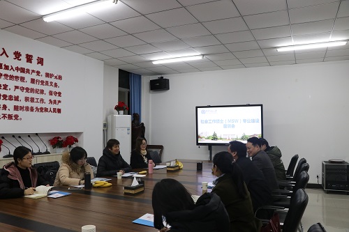 近日,中国社会工作教育协会副会长兼秘书长、北京大学社会学系博士生导师马凤芝教授应邀参加由我院承办的中国社会工作教育扶贫年会暨精准扶贫与社会工作研讨会。12月7日晚,社会工作硕士(MSW)专业建设座谈会在我院办公楼301c会议室举办,会议由马凤芝主讲,院长高中建、党委书记魏雷东、副院长张晨寒及专业教师代表近20人共同参与了此次座谈会。