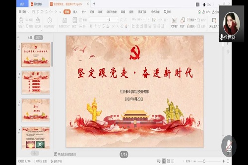 为深入学习习近平总书记致全国青联、学联贺信精神,引导广大青年学生坚定理想信念,强化责任担当,8月23日,我院借助互联网平台召开“坚定跟党走,奋进新时代”专题学习会。学院相关负责人、全体政工干部、学生骨干代表共60余人参加学习。会议由院团委副书记田嘉玺主持。