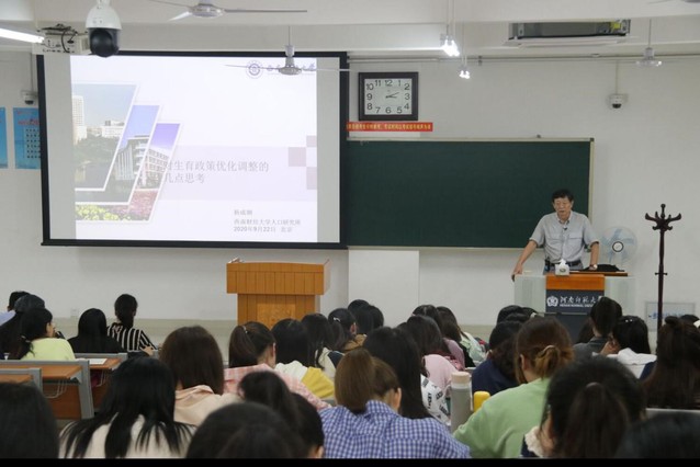 9月27日下午,中国人口学会副会长、西南财经大学博士生导师杨成钢教授在东区综合楼104室作题为“对生育政策优化调整的几点思考”学术讲座。学院相关专业教师、部分研究生及本科生共同聆听本次讲座。讲座由社会事业学院副院长陈妍娇主持。