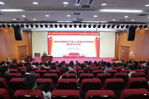 11月1日上午,我院分党校第三期入党积极分子培训班党课在东区思政平台进行,师大附中、校医院、后勤管理处(后勤集团)、材料学院、马克思主义学院、新联学院与社会事业学院等7个单位共计120余名入党积极分子参加。本次党课由校党委组织部组织科科长董长雨担任主讲人。