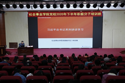 11月1日下午,社会事业学院分党校第三期入党积极分子培训班党课在东区思政平台进行,师大附中、校医院、后勤管理处(后勤集团)、材料学院、马克思主义学院、新联学院与社会事业学院等7个单位共计120余名入党积极分子参加。本次党课由学院党委副书记林安春主讲。