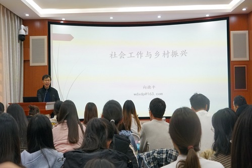 12月5日上午,应我院邀请,中国社会工作教育协会副会长、华中科技大学教授向德平在崇智楼503A室作了题为“社会工作与乡村振兴”的学术讲座。学院相关专业教师、部分研究生及本科生聆听了本次讲座,讲座由学院副院长海龙主持。