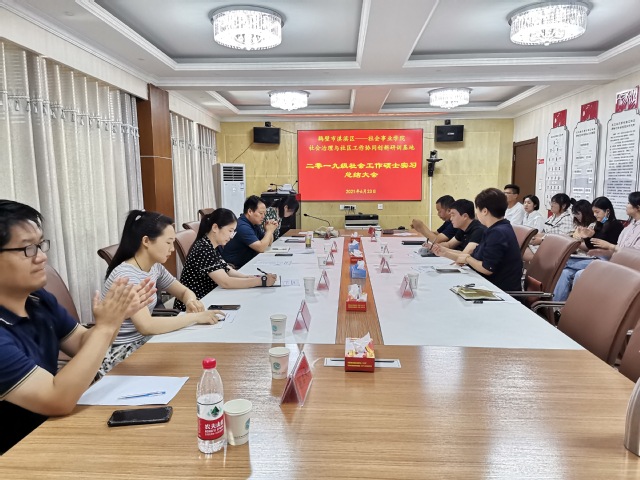 会上,元军平局长首先对为期三个多月的实习工作进行回顾总结,从工作肯定、感情融入、专业实践和真诚感谢等四个方面对实习工作和学生表现予以高度认可和充分赞誉。学生实习社区街道相关负责人介绍了学生利用社会工作专业知识开展,积极融入社区,基于社区实际需求,开展特色社区活动,构建特色服务品牌,提供专业化服务,开展理论政策实务研究。