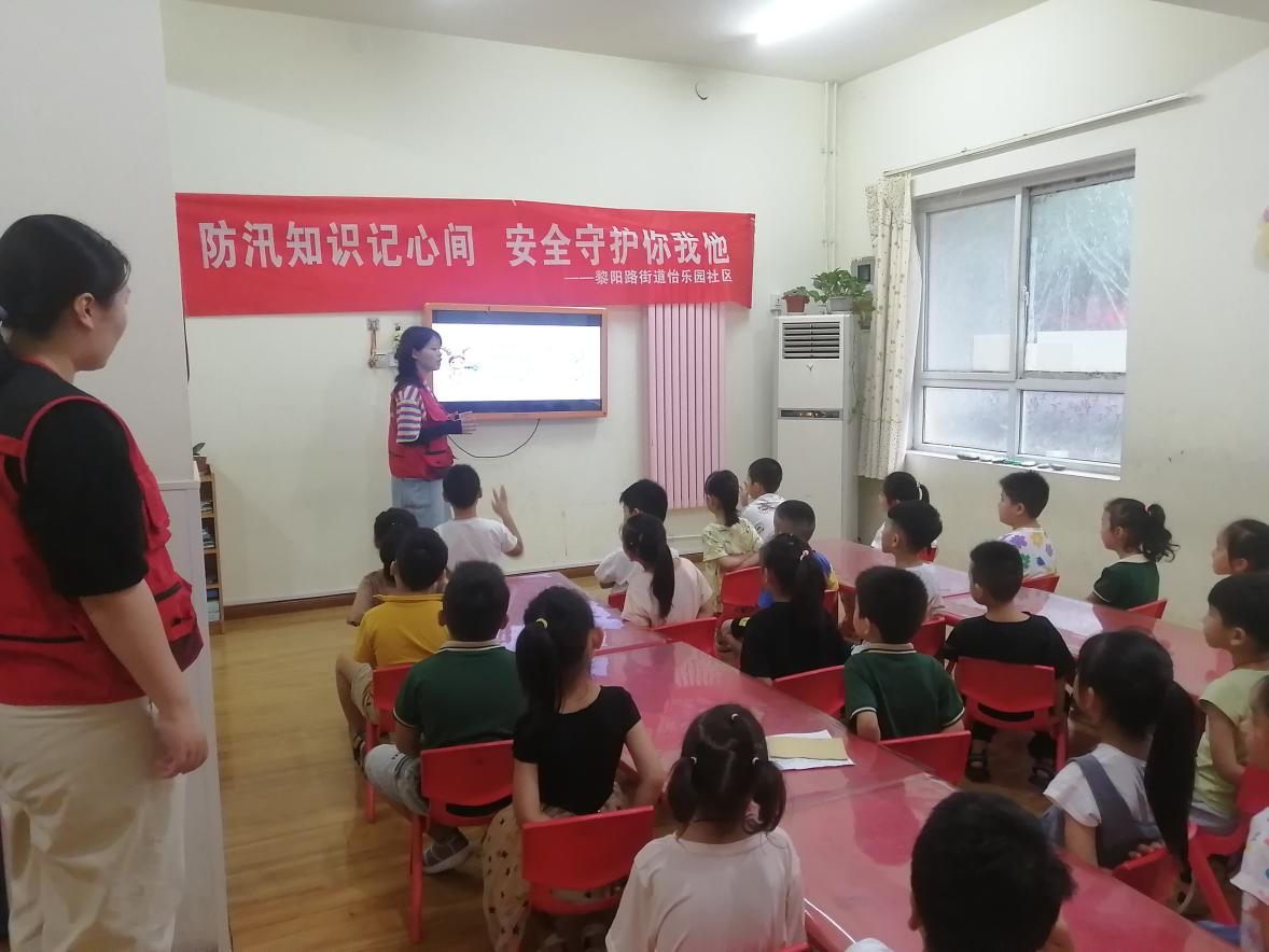 除了采取防汛安全知识普及,防汛动画播放与“我是防汛小能手”分享的教育方式外,在浩翔幼稚园与跨世纪幼儿园,实习生郭佳佳还采取以歌宣讲的方式,结合现有热门歌曲《蜜雪冰城主题曲》填入歌词,引导小朋友通过传唱歌曲加深教育印象。
