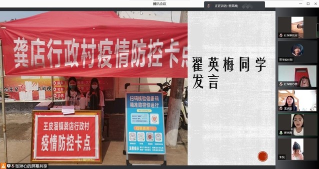 此次主题班会主要由四项内容组成。首先,各年级辅导员为同学们介绍新形势下疫情防控相关知识,讲解学校目前疫情防控要求,呼吁同学们积极响应学校疫情防控部署,配合学校、学院做好各项疫情防控工作,为秋季平安返校做好准备。随后,由参与防疫抗汛志愿服务工作的同学分享参与志愿服务工作的体验和感悟。其中,2019级社会工作班郭佳佳同学分享道:“我参与了我们社区的疫情防控工作,每天在社区门口为来往人员进行体温测量与消毒工作,此次志愿服务工作让我对社会工作在疫情中如何发挥更大作用有了更深层次的思考,希望在今后能将自身专业领域的知识更多运用到社会实践中去”。