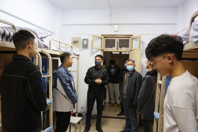 走访慰问中,学院领导与新生进行亲切的交谈,对新生的到来表示欢迎,并详细地询问了假期生活和返校感受,督促新生尽快调整状态,积极投入到新学期的学习中。瞿洪明叮嘱新生,初入校园,要提高自身财产安全防范意识,坚决抵制校内的推销和传教活动,谨防电信诈骗,遇到问题要及时向辅导员老师反映,同时也要保持高中时积极的学习状态,积极参与学院活动,提高身体素质,促进全面发展。魏雷东关切地询问了学生们来自哪里、对学校的初印象如何、是否适应学校生活,并表示,同学们要严格按照学校防疫工作通知要求,配合学校做好相关防疫工作,遵守学校规章制度。在谈到宿舍居住安全问题时,林安春特别强调,同学们要注意寝室卫生、安全用电、强化安全意识,并鼓励同学们之间要相互理解,相互包容,努力营造一个安全、卫生、文明、和谐的宿舍环境。