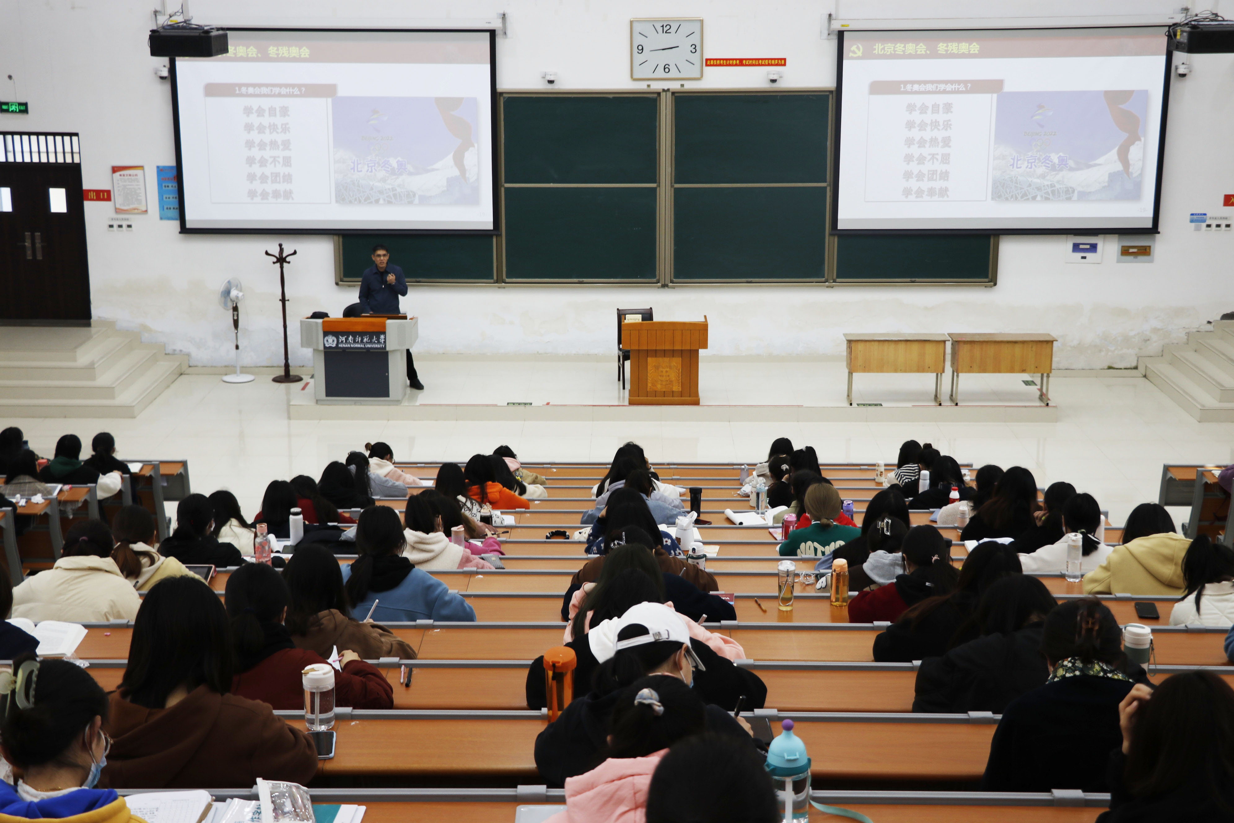 瞿洪明以回顾2021、展望2022开篇,从“精读学习党的十九届六中全会精神”、“北京冬奥会意义和影响”、“人生能有几回搏”励志精神三个方面展开讲解。他用数字精读的方式,系统、条理的带领同学们再次学习、领会十九届六中全会精神。随后,瞿洪明通过三个精美小视频,和大家一起回顾北京冬奥的精彩瞬间、领会成功举办冬奥会的意义。最后,瞿洪明结合同学们专业学习状况、考研就业形势和未来发展趋势,引导同学们进行自我客观评价和精准定位,树立奋斗目标、明确奋斗方向,通过拼搏努力,实现人生价值。