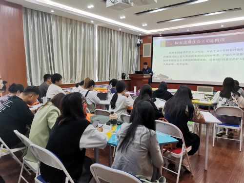 课堂上,瞿洪明根据党的发展的四个重要历史时期为纲要,以党的发展重要历史阶段为节点,以党的历届代表大会为线索,和大家共同学习中国共产党百年伟大、光辉的历程。在课堂讲述过程中,他通过多个短视频,生动形象地展现了党的诞生、大革命时期、艰苦抗战、改革开放、中国特色社会主义进入新时代的发展历程。让学员们深刻理解中国共产党团结带领中国人民实现了中国从几千年封建专制政治向人民民主的伟大飞跃,实现了一穷二白、人口众多的东方大国大步迈进社会主义社会的伟大飞跃,实现了坚持改革开放、推进中华民族从站起来到富起来的伟大飞跃,实现了在中华大地上全面建成小康社会,迎来了从站起来、富起来到强起来的伟大飞跃。最后,他着重指出,我们青年要不忘初心,牢记使命,从党的百年奋斗史中汲取智慧、汲取力量,用实际行动兑现“请党放心、强国有我”的庄严承诺。