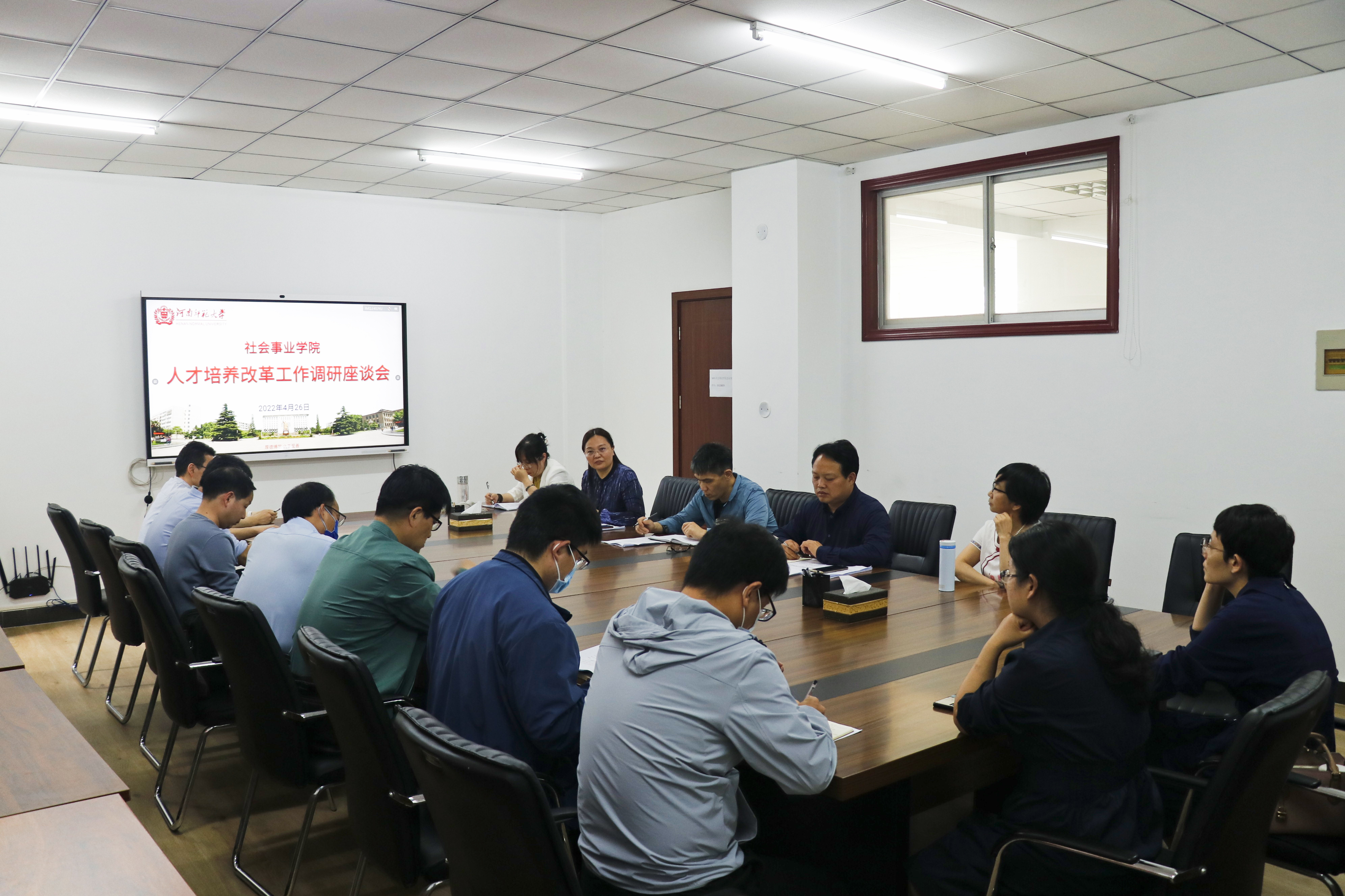 4月26日下午,社会事业学院在210会议室召开人才培养改革工作调研座谈会,学院党委书记瞿洪明、院长魏雷东以及各学系主任和骨干教师代表参加。会议由教学副院长陈妍娇主持。