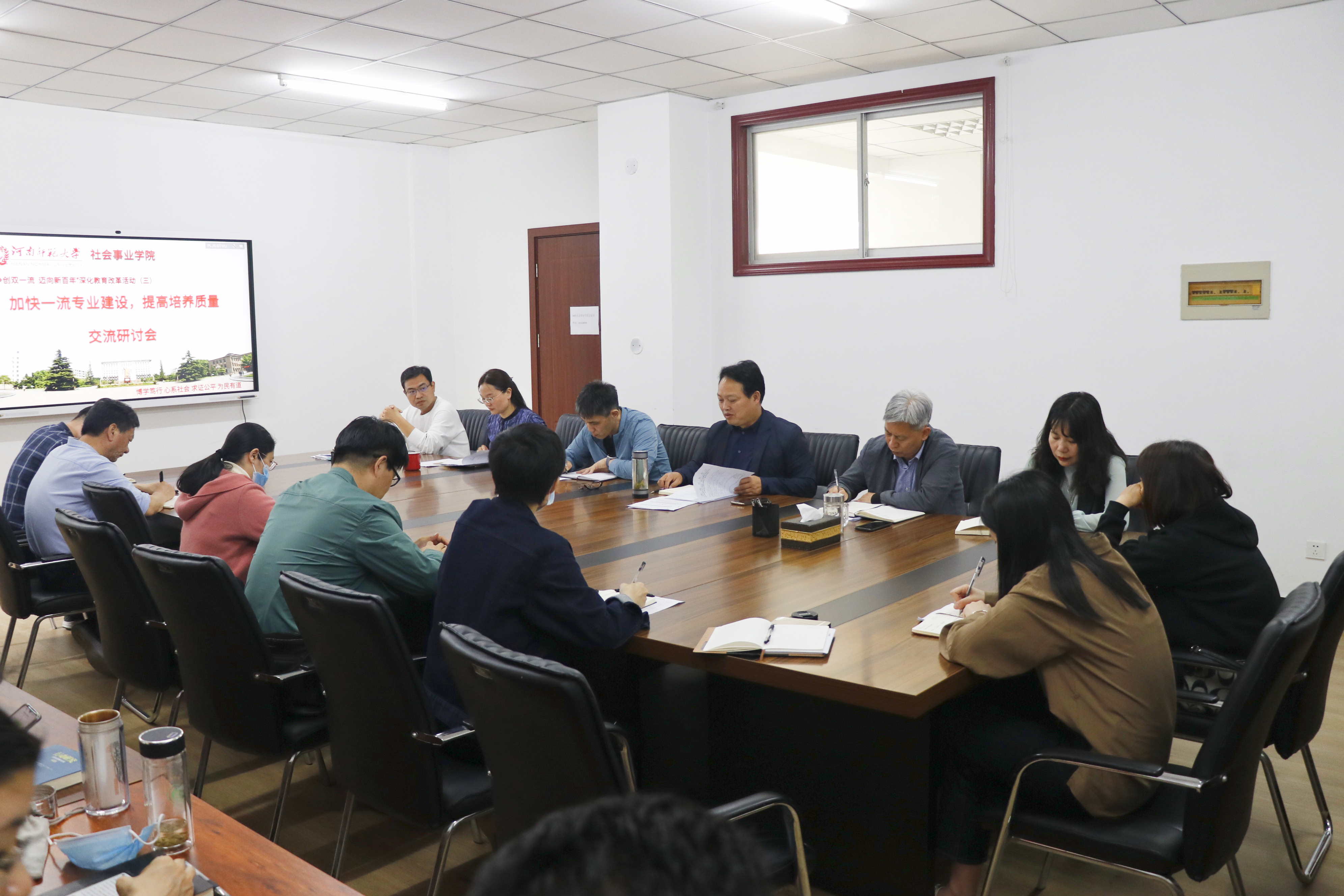 4月26日,社会事业学院在崇智楼210会议室举行以“加快一流专业建设、提高人才培养质量”为主题的三场集中学习讨论会。院党委中心组、全院教职工、各学系教师代表参与其中。