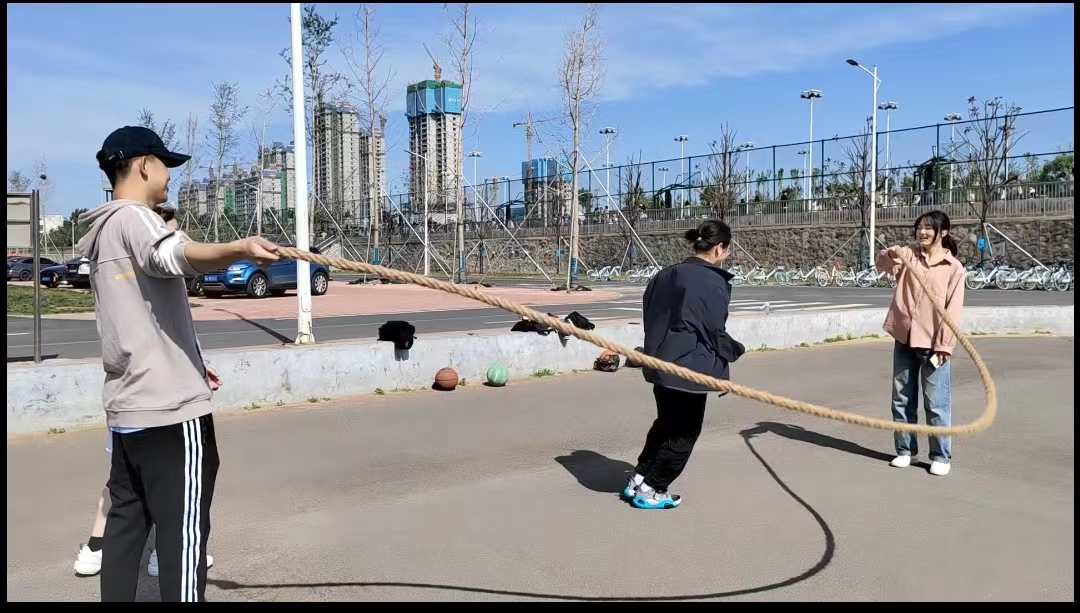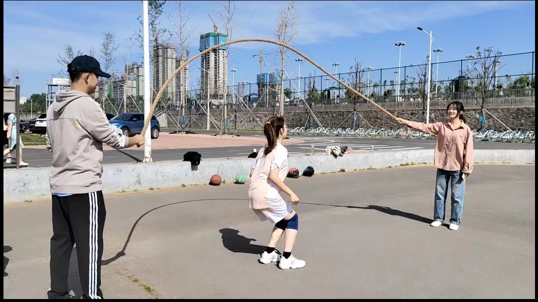 活动伊始,组织者宣读比赛规则及注意事项,强调“安全第一,比赛第二”,比赛在同学们的热烈掌声中拉开帷幕。运动员们依次列队排站,从绳的一侧跳至另一侧,跳过的队员在同侧另一端排队,循环接替。参赛同学间配合默契、奋力角逐,以良好的精神状态投入比赛中。激烈而又扣人心弦的赛程赢得在场观众的喝彩与掌声,操场上的笑声响彻云霄,现场气氛达到高潮。同学们纷纷表示这样的活动生动有趣,意义非凡。
