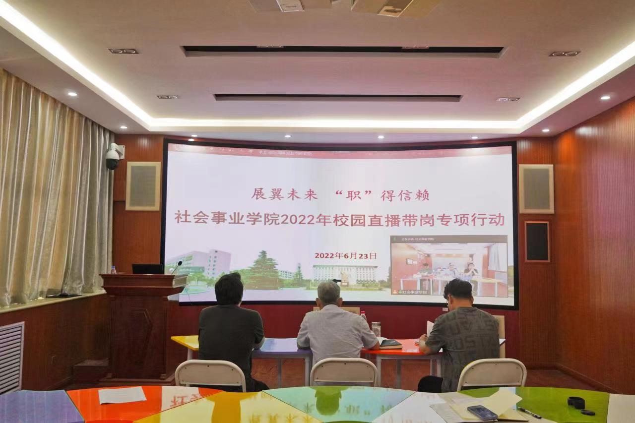 为贯彻落实《教育部关于做好2022届全国普通高校毕业生就业创业工作的通知》文件精神,持续做好疫情防控期间毕业生就业工作,全力以赴为2022届毕业生搭平台、谋岗位、送服务。6月23日上午,社会事业学院举办展翼未来,“职”得信赖2022年校园直播带岗专项活动。郑州市馨家苑社区服务中心益星社会工作副总干事赵根磊、人力资源部总监徐巍、学院2018级待就业毕业生参与其中。活动由学院党委副书记林安春主持。