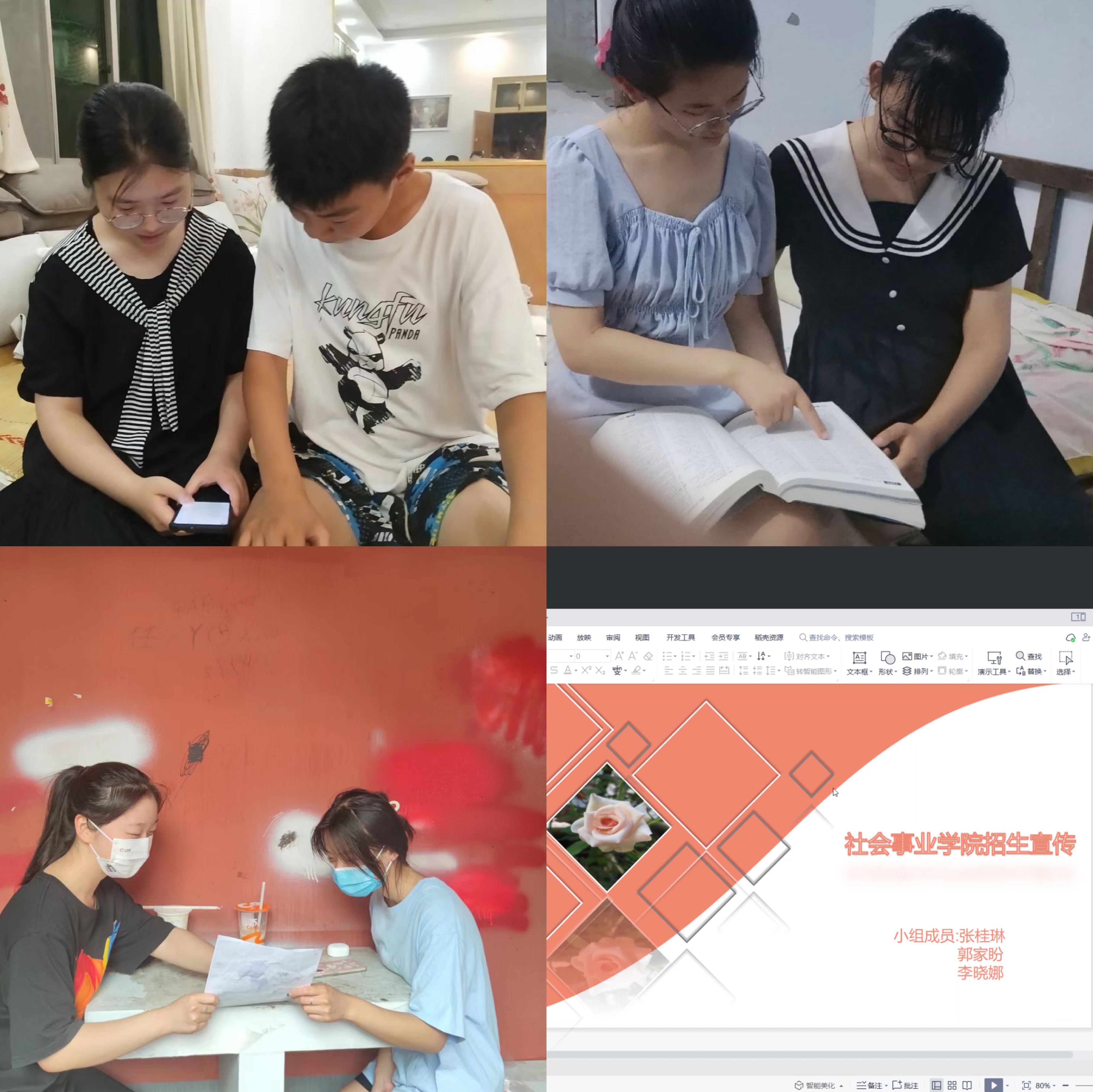 活动前期,院团委精密组织,认真制定方案,开展社会实践学生专题培训会,就本次活动的开展形式、流程、注意事项等内容详细讲解。本次活动借助“线下”“线上”相结合的灵活形式开展。学院实践学生建立“今日招生今日行,我们一定行”团队、“为弟弟妹妹服务”团队等线下宣讲团,通过现场宣讲、发放宣传材料等形式宣传学院的专业特色、优势;介绍校园环境、奖助贷政策,帮助更多高考考生了解师大,了解社院。线上招生宣讲成员借助网络平台推送,转发学院招生宣传资料,制作学院招生短视频,通过腾讯会议等平台,线上实时答疑解惑。