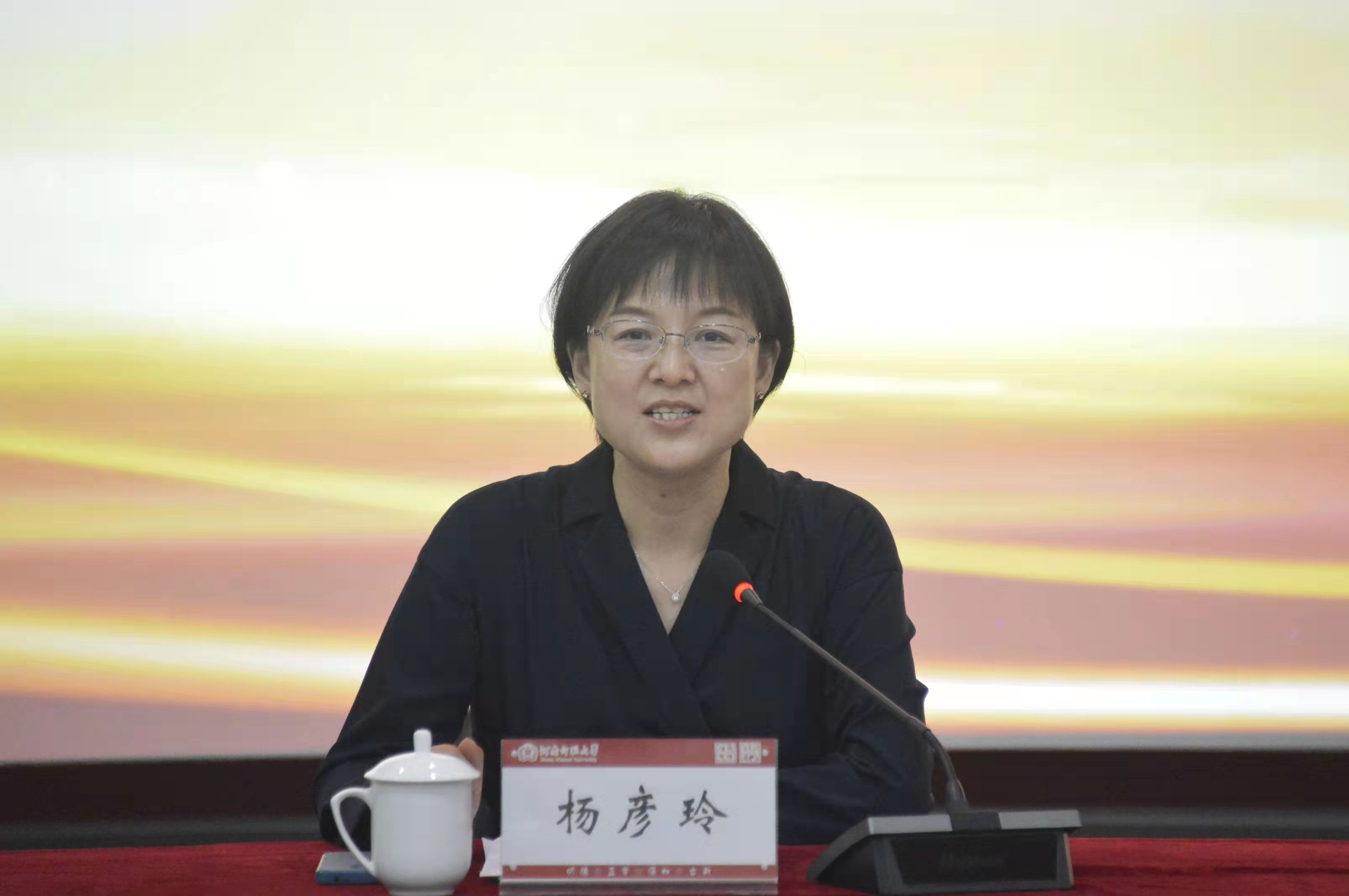 杨彦玲代表新乡市委、市政府致辞。她指出新乡是志愿者之城,志愿红是文明新乡最靓的风景,新乡市委、市政府将全力支持分中心的发展。衷心祝愿分中心培养更多的专业人才,孵化更多的优秀服务项目,更好地推动新乡志愿服务事业高质量发展。