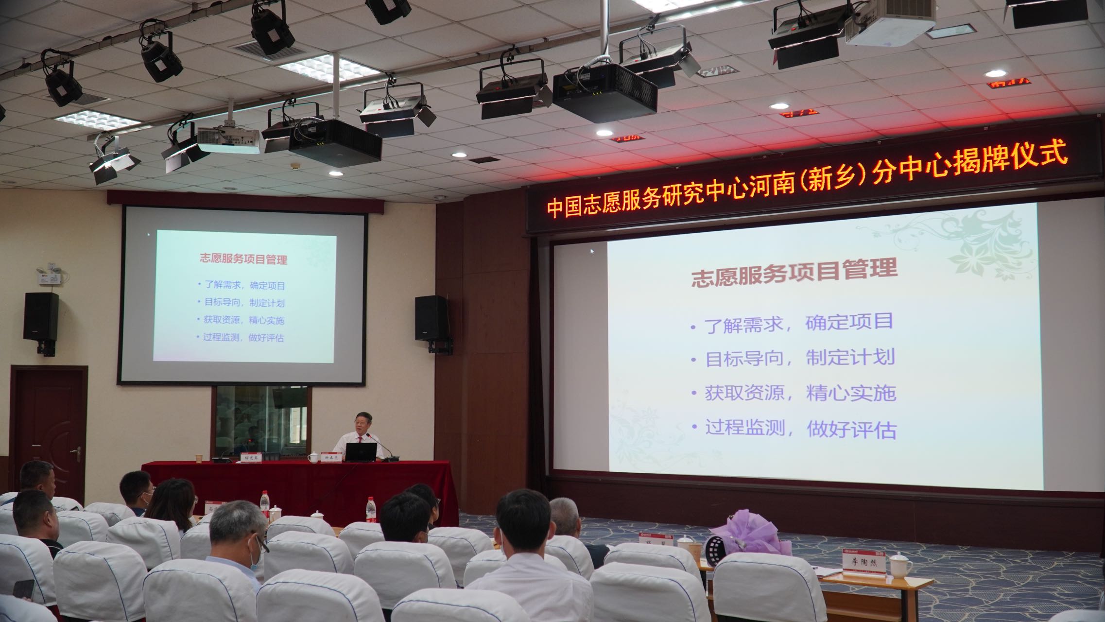 田丰教授介绍了当前中国志愿服务研究中心的科研条件和后期的工作计划。他指出中国志愿服务研究中心目前办有《中国志愿服务研究》学术期刊,中心定期发布《志愿服务蓝皮书》,期望学院师生能够积极开展志愿服务研究。