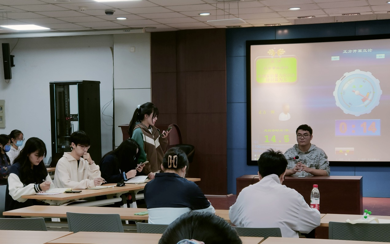 此次辩论赛以“遏制家庭暴力应以法律制裁为主还是以道德教化为主”为主题,共分为“开篇陈词”“攻辩”““攻辩小结”“自由辩论”““总结陈词”五个环节。比赛中,双方辩手你来我往、唇枪舌剑,攻守异常激烈。正反方一辩运用扎实的专业知识,凭借深厚的功底,一针见血,立稳自己的观点并做限时陈词。攻辩环节,双方选手据理力争,引经据典,整场比赛高潮迭起,精彩不断。最后,评委对选手进行点评,同时向辩论双方分享了自身的宝贵经验。
