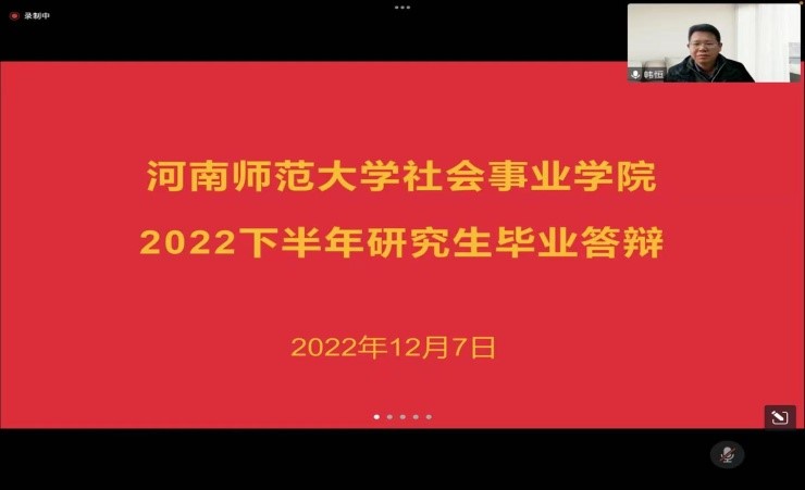 12月7日,伟德官网下载苹果版社会事业学院举行2022下半年硕士研究生毕业答辩会,9名毕业生参与此次答辩,答辩会采取线上方式进行。郑州大学郑州与公共管理学院副院长韩恒教授担任答辩主席,会议由孟利艳副院长主持。