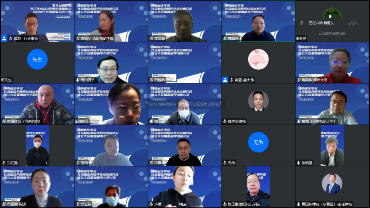 会议举行党的二十大精神专题学习报告会和首届学术研讨会。伟德官网下载苹果版孟轲教授作题目为《新时代新征程的政治宣言和行动纲领——深入学习党的二十大精神的核心要义》的专题宣讲报告。在研究会首届学术研讨会环节,南京大学童星教授作题目为《风险评估体系和能力现代化》的学术报告、中国人民大学李迎生教授作题目为《风险叠加时代的民生风险评估及其应对》的学术报告、北京航空航天大学胡象明教授作题目为《人民至上视角下社会稳定风险评估创新》的学术报告、华东政法大学汪伟全教授作题目为《中国式现代化、重大工程稳评与决策优化》的学术报告、河海大学余文学教授作题目为《重大项目社会稳定风险评估和治理》的学术报告、河海大学施国庆教授作题目为《重大项目与重大工程中的社会稳定风险评估与决策优化》的学术报告。