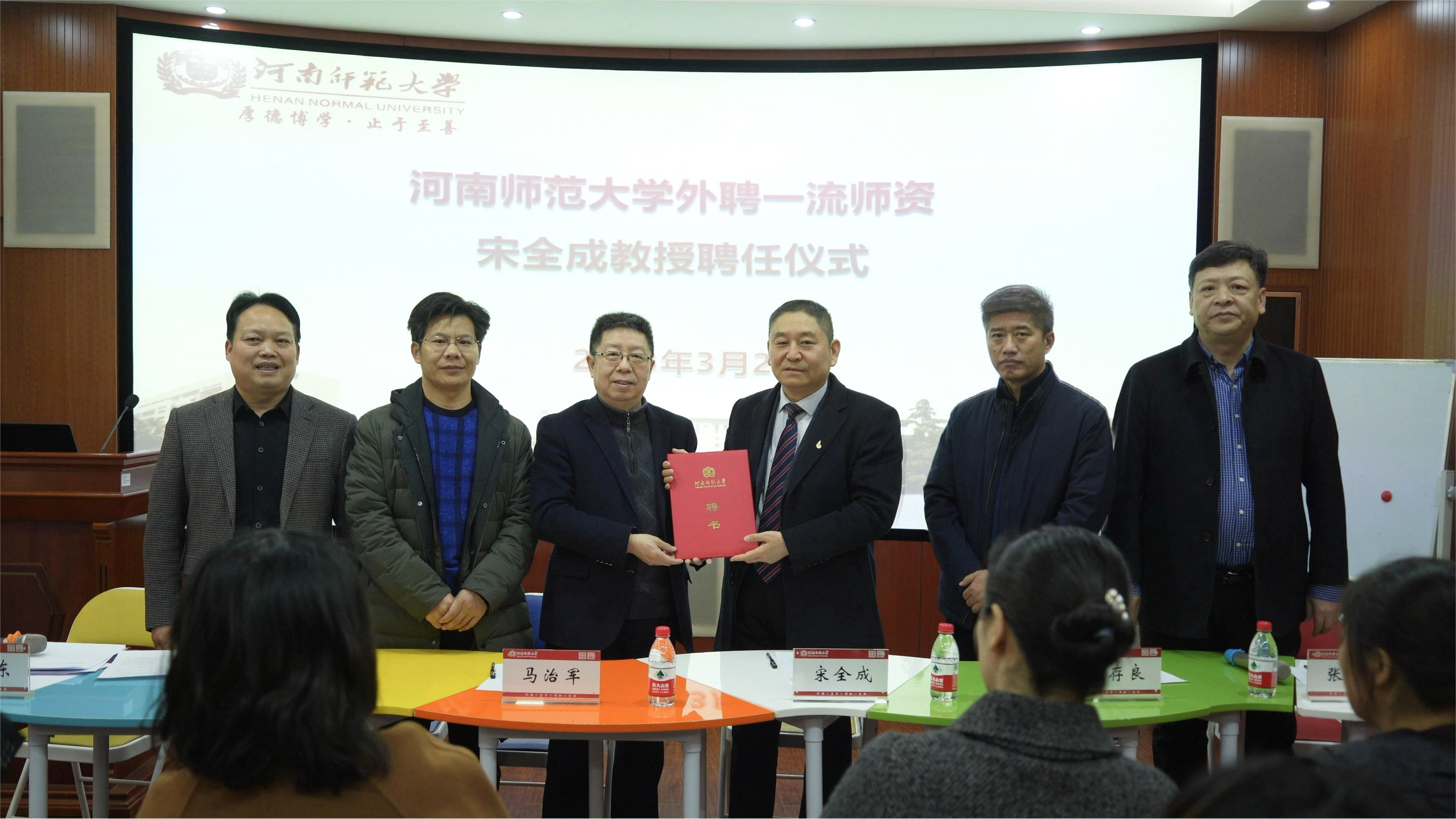 马治军亲切会见宋全成教授,对其支持学校一流本科专业建设表示衷心感谢,为其颁发学校外聘一流师资聘任证书并就“加快一流专业建设,提高人才培养质量”进行座谈交流。