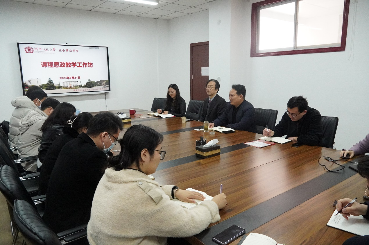 为进一步提升学院专业课程思政建设水平,3月21日,社会事业学院于崇智楼210举办社会学课程思政教学工作坊。河南省思政研发与应用中心赵宏周主任、方阁经理一行三人,数学与信息科学学院教学院长董乐,社会事业学院全体教职工出席会议。工作坊以线上线下融合方式进行,负责人刘博通过腾讯会议远程参会。会议由院长魏雷东主持。