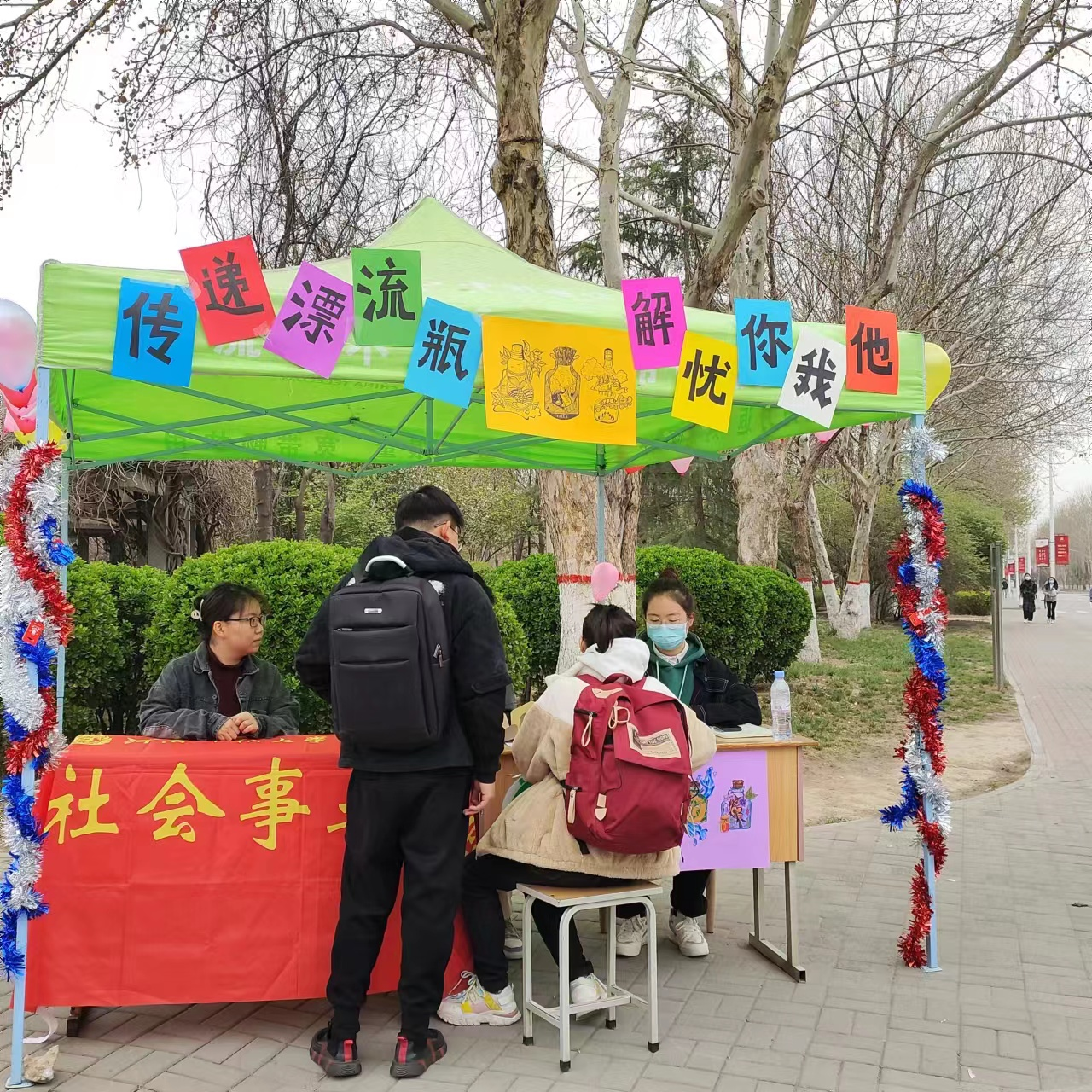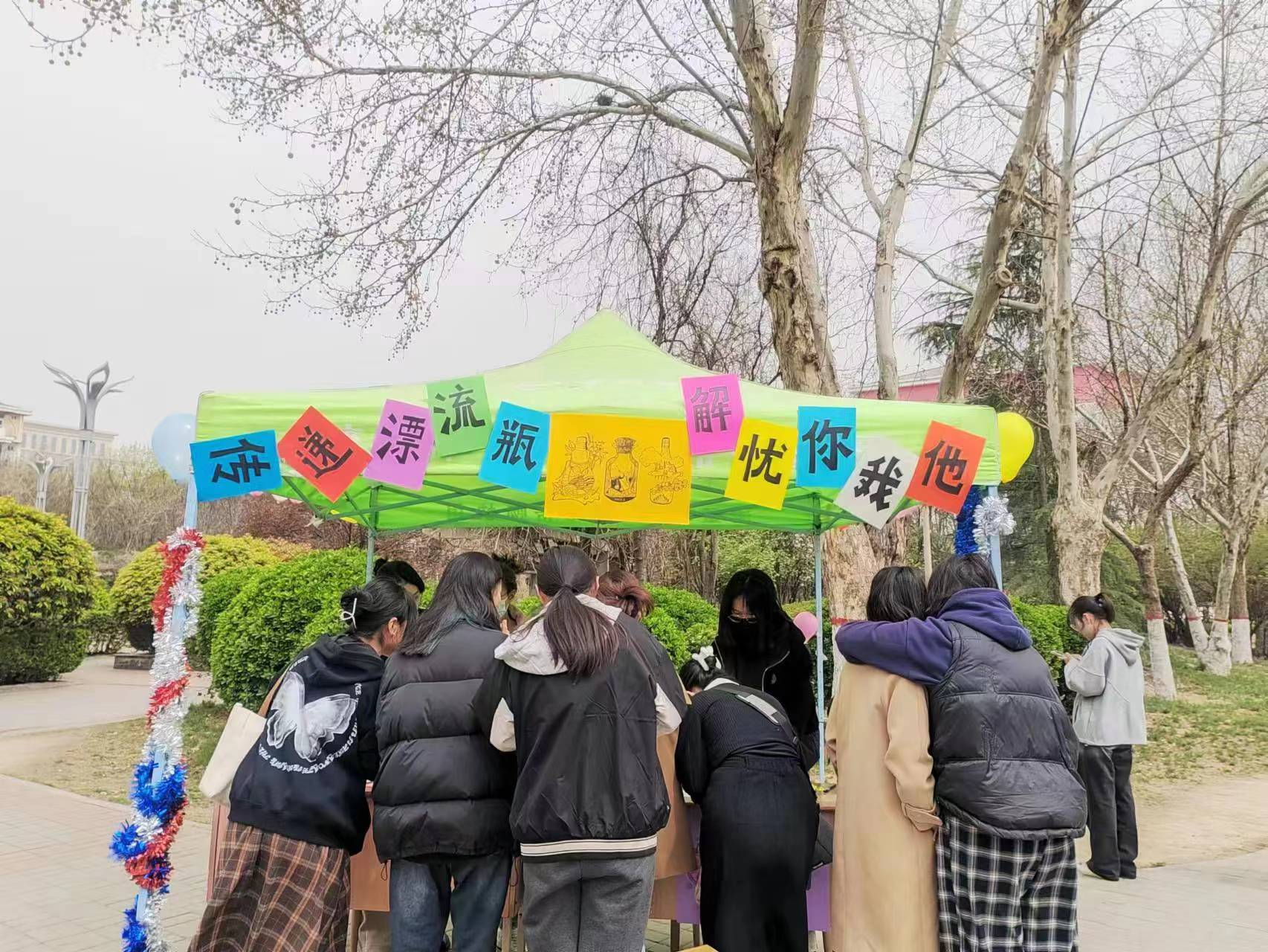 为帮助青年学子积极理性地看待生活中的挫折挑战,用恰当的方式应对心理困惑和烦恼,我院芙薇心理咨询工作站于3月25日-26日在东区餐厅西南角开展“传递漂流瓶,解忧你我他”主题活动。