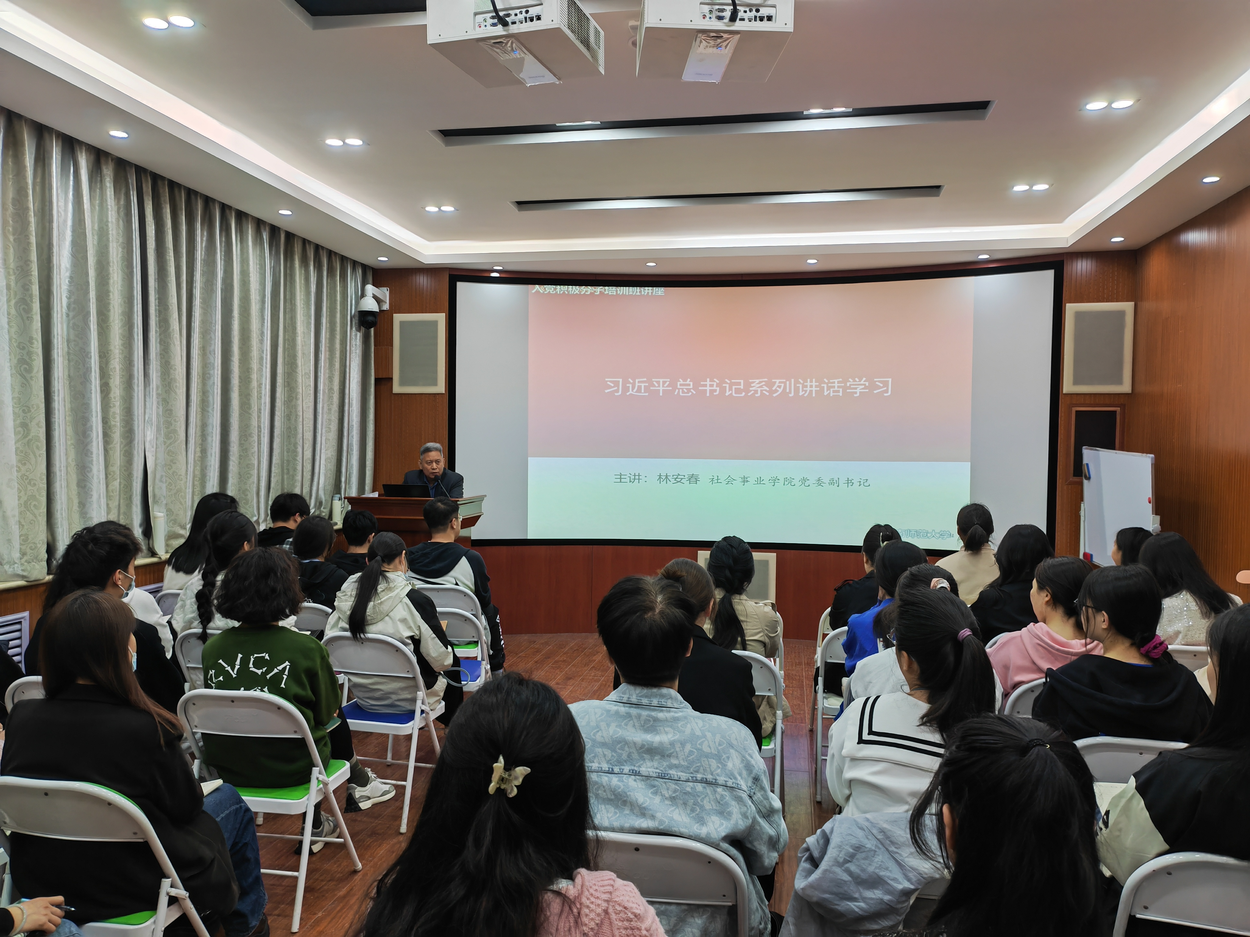 3月29日晚,社会事业学院分党校入党积极分子培训班于崇智楼503室进行。学院共41名入党积极分子参与其中。本次党课由社会事业学院党委副书记林安春担任主讲人。