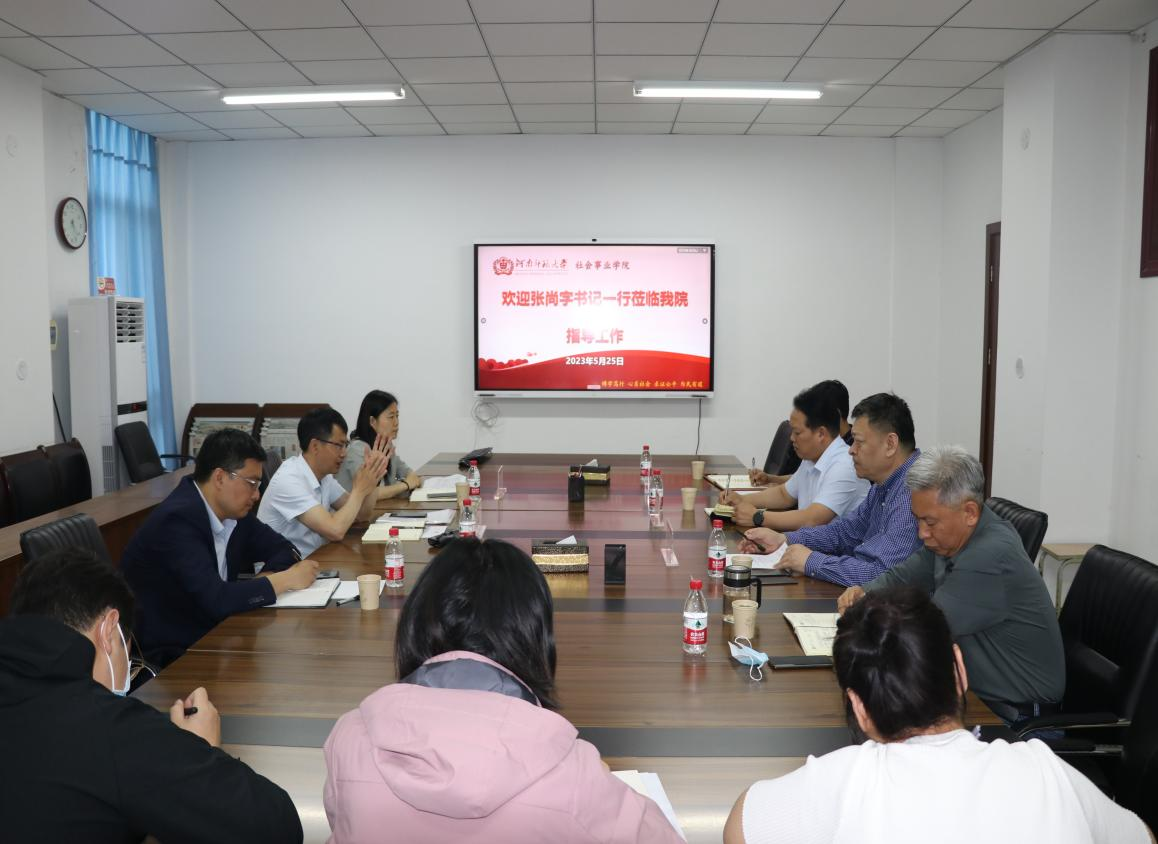 5月25日下午,校党委副书记张尚字、党委组织部副部长常晓丽、党政办公室副主任卢鑫一行莅临学院进行基层党建工作调研。调研座谈会在崇智楼210会议室进行,学院领导班子成员参加会议,会议由学院党委书记张向东主持。