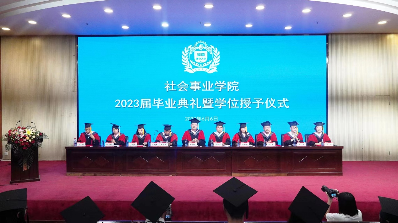 6月6日下午,社会事业学院2023届毕业典礼暨学位授予仪式在思政平台举行。社会事业学院领导班子,教师代表、家长代表及全体2023届本硕毕业生参加典礼。仪式由院党委副书记林安春主持。