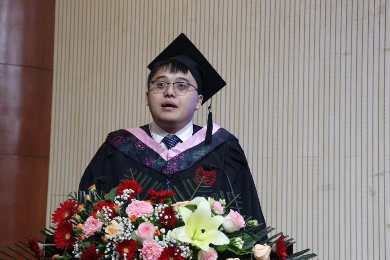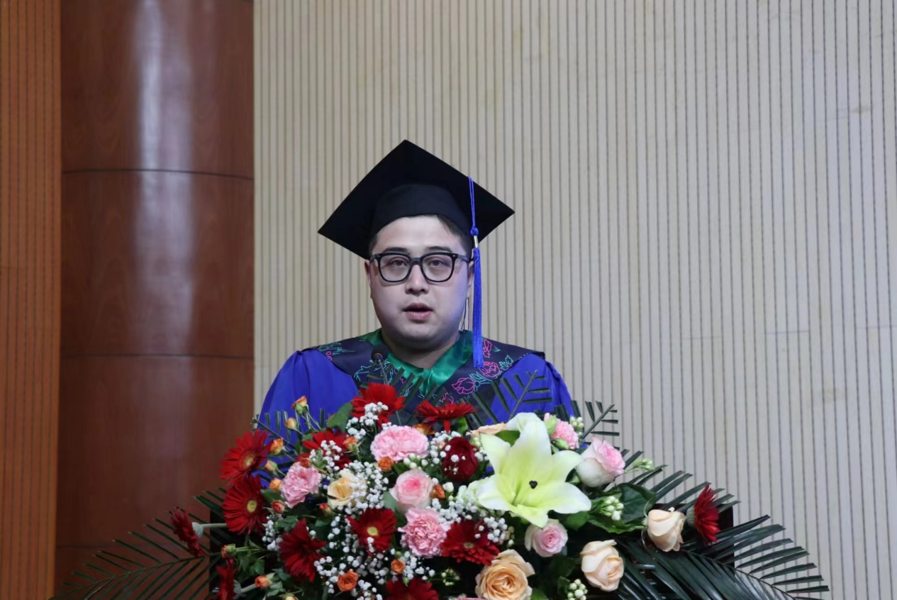 在校生代表2020级社会工作专业崔晓晓祝贺2023届毕业生圆满毕业,表达对他们的钦佩。本科毕业生代表李浩龙、硕士毕业生代表禹明豪分别发言,他们深情回顾在学院的点点滴滴,表达了对母校与老师的感恩,表示将勇敢地面对人生挑战,成就人生梦想。教师代表、社会学系主任高博深情寄语毕业生,希望毕业生在今后的道路中要保持信心、保有理想,做到爱自己、爱他人、爱世界。