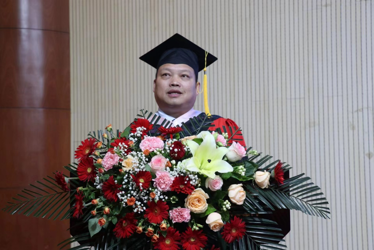 院长魏雷东教授代表学院向2023届毕业生致以祝贺,向精心培养毕业生的老师、辛勤养育毕业生的家长、关心支持毕业生的亲人致以崇高的敬意和衷心的感谢。他以《心灵自由 人生幸福》为题,围绕心态自由、心性自由和心境自由,分享年轻人如何通过忠诚之心、责任之心和担当之心,去实现小我幸福、大我幸福和无我幸福。