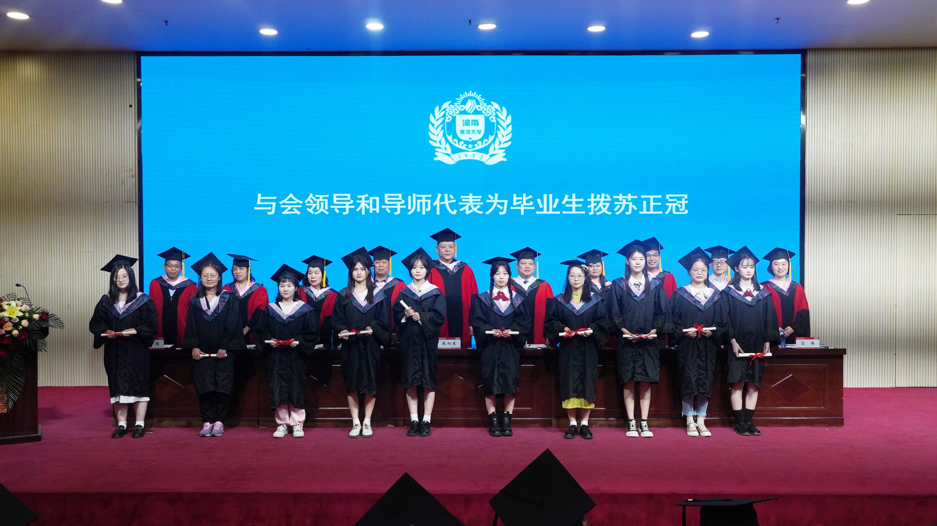 伴随着激昂雄壮的《义勇军进行曲》,典礼正式开始。院党委书记张向东宣读《2023 年河南省优秀应届大中专毕业生决定》,副院长陈妍娇、孟利艳、海龙分别宣读《2023届本科生学位授予决定》《2023届研究生学位授予决定》《伟德官网下载苹果版2023届优秀毕业生决定》。与会领导和导师代表为优秀毕业生代表颁发荣誉证书,并为毕业生拨苏正冠。